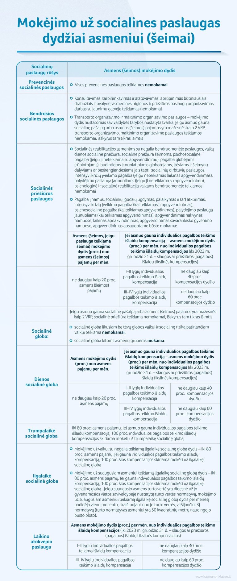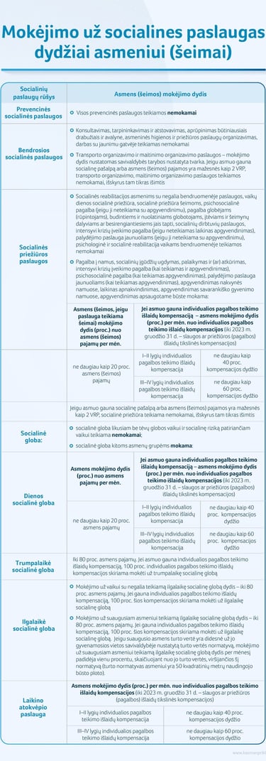 Paslaugų kaina nustatoma atsižvelgiant į paslaugų poreikius ir priklauso nuo asmens (šeimos) gaunamų pajamų.